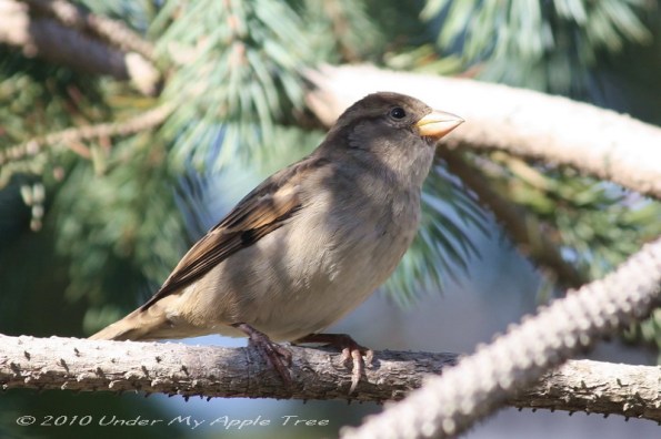 I heard this little house sparrow chirping and when I approached she posed for a picture. They are often under appreciated because they are a common backyard bird. (click photo for sharper image)