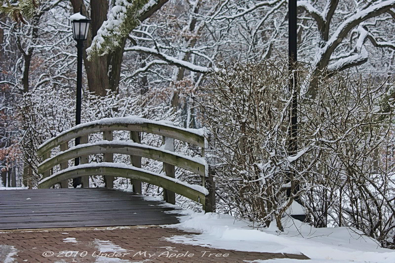 Love the snowy picture! The bridge adds just the right touch. Wish I had snow to take pictures of right now…instead of the wet, cold rain that’s been falling all day.