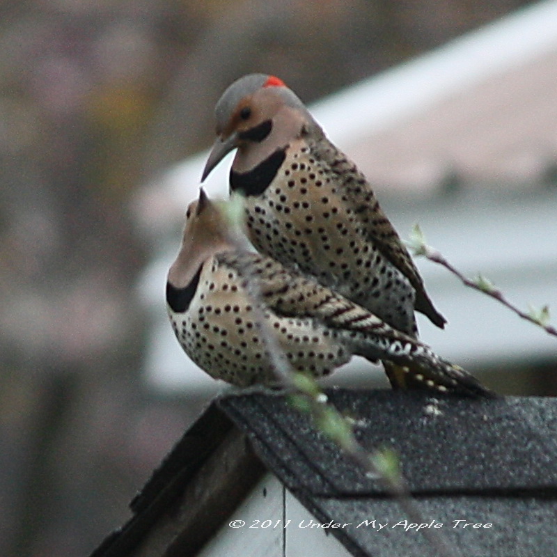 After a few minutes of sitting on my garden shed they decided it was a good place to do a little mating. Yup, they did. Look close and you can see he’s standing on her back. Most likely they have a nest in a nearby yard which is exciting because that means baby Flickers in a few months.