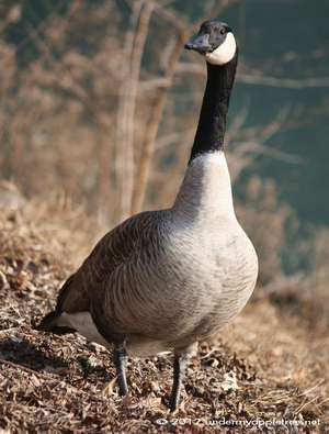 After lunch, on my way back to the train station, I walked along the Chicago River and saw pairs of Canada Geese congregating near the banks. One of them walked right up to me.