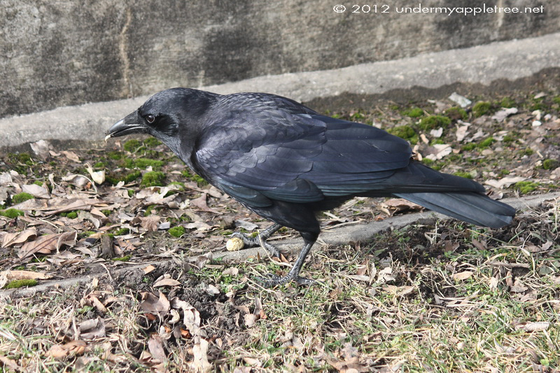 The crows were killed off in large numbers in 2002 from an outbreak of West Nile virus. This one was scavenging peanuts that people were throwing to the squirrels.