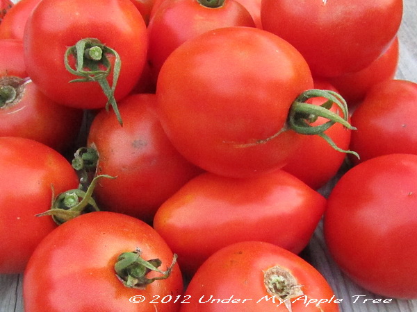 My tomato plants enjoyed the unusually warm summer. As long as I watered them regularly they were very happy, and very productive. They are ripening earlier than usual and I have already made six quarts of puree.