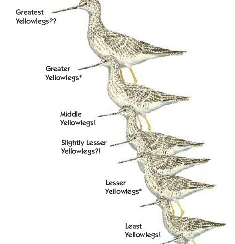 This description of the fictitious “Yellowlegs” perfectly illustrates the problem facing a birder when trying to identify similar looking shorebirds using their field guide: