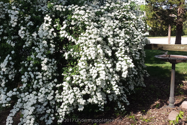 Almost wordless: The Spirea burst into bloom earlier this week. I grew this one from a cutting off another shrub in the backyard – it is now 20 years old!