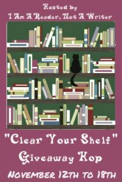 Welcome to my stop on the Clear Your Shelves Giveaway Hop hosted by Kathy of I am a Reader Not a Writer. Over 100 blogs are participating and each is giving away a book or books from their shelves. The hop runs from today through November 18th.