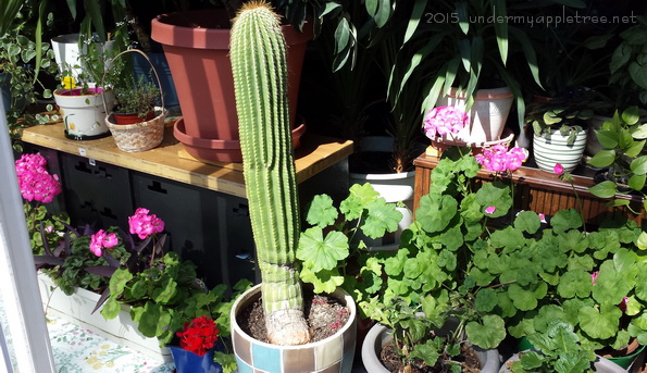 At the end of every growing season I bring a selection of favorite annuals inside to spend the winter. If the plants can survive the dry air and the lack of indirect sunlight, I can usually coax them back to life in the spring. These brilliant pink geraniums are a favorite and I save a few plants every season.